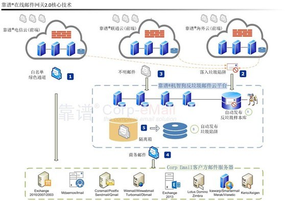 靠谱邮件反垃圾邮件安全网关主要针对较大企业的自建邮件服务,不需要架设维护反垃圾的软硬件产品,就可以轻松解决反垃圾反病毒问题。实际上,在欧美国家,在线反垃圾网关服务(云服务)很普遍,超过50%以上大型企业在建立自己的邮件系统后,都采用云端反垃圾邮件服务解决垃圾邮件及邮件安全等问题。提供此类服务的供应商有赛门铁克,Proofpoint,Cyren,Mimecast等等。而在我们国内,反垃圾硬件产品更被企业所接受,企业认为这使得邮件安全得到保障。