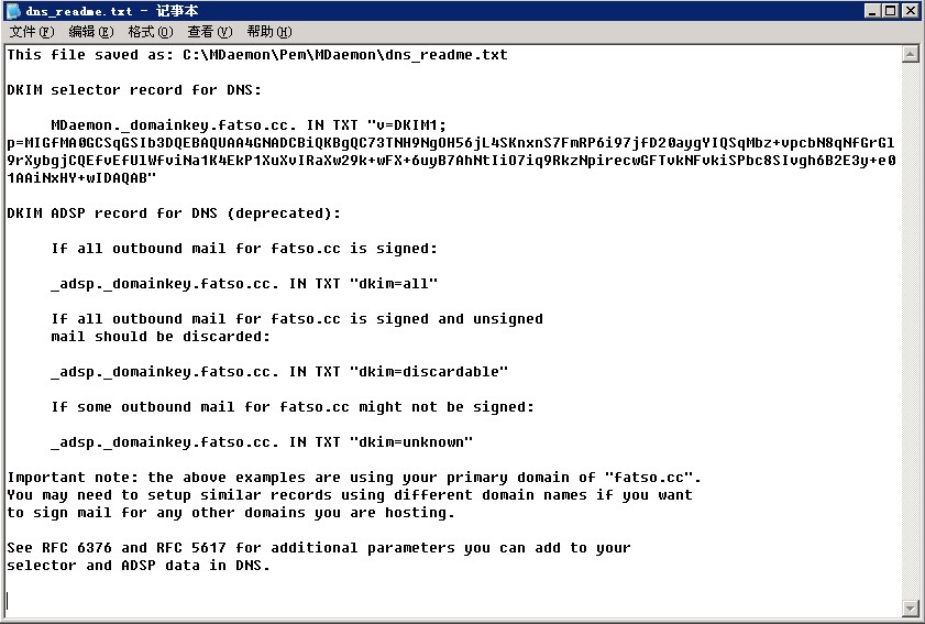 环境:公网MDaemon服务器一台 域名:fatso.cc