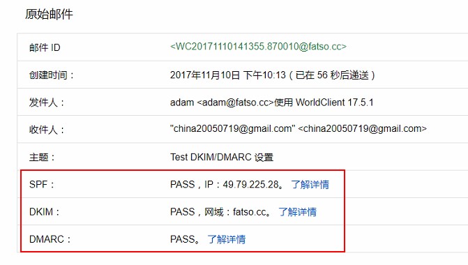 四、静待DNS解析生效,往Gmail发送测试邮件。