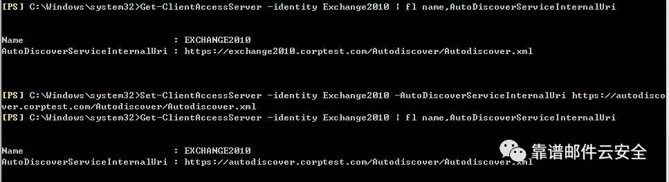 1、使用 Exchange Management Shell 修改 Autodiscover 的内部URL属性先查看原来 Autodiscover 的内部URL