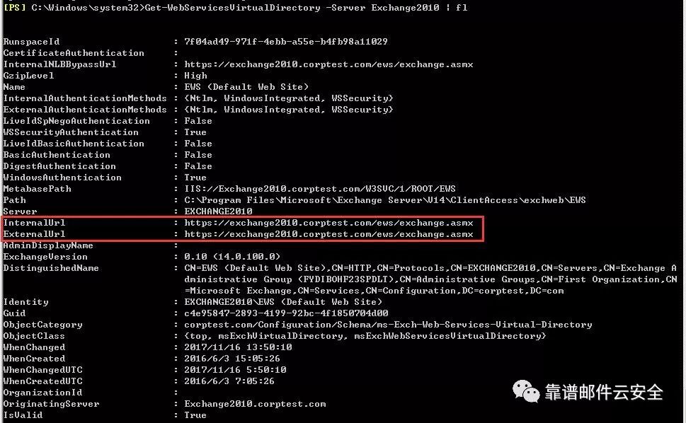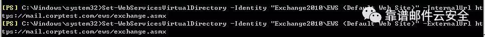 [PS] C:Windowssystem32>Set-WebServicesVirtualDirectory -Identity "Exchange2010EWS (Default Web Site)" -InternalUrl https://mail.corptest.com/ews/exchange.asmx