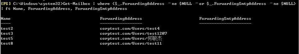 Exchange导出自动转发的用户及转发目标邮箱地址