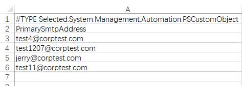 5.同样,把上面命令输出结果中PrimarySmtpAddress这一列直接导出至一个csv文件