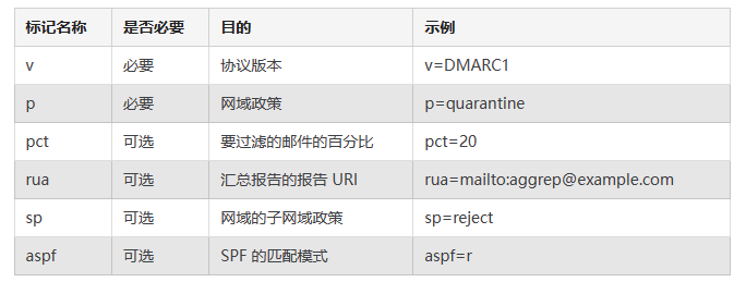 有关其他可用标记,请参阅 DMARC 标记注册表。