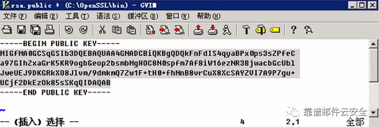 打开rsa.public ,我不管你用什么打开,不出现乱码就行。会看到一大串编码,如下图: