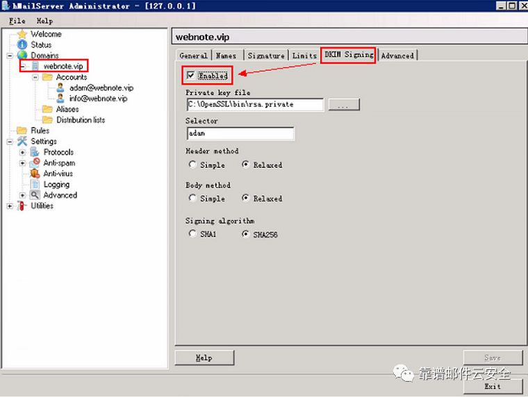 3、Selector:填写记录头 ._domainkey :前面的内容,我这里是adam,这个可以随你填