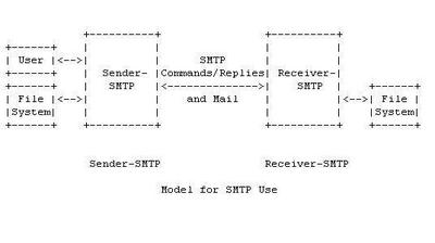 SMTP提供了一种邮件传输的机制,当收件方和发件方都在一个网络上时,可以把邮件直传给对方;当双方不在同一个网络上时,需要通过一个或几个中间服务器转发。SMTP首先由发件方提出申请,要求与接收方SMTP建立双向的通信渠道,收件方可以是收件人也可以是中间转发的服务器。收件方服务器确认可以建立连接后,双发就可以开始通信。下面是SMTP的模型示意图。