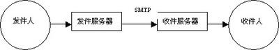 电子邮件与普通邮件有类似的地方,发信者注明收件人的姓名与地址(即邮件地址),发送方服务器把邮件传到收件方服务器,收件方服务器再把邮件发到收件人的邮箱中。如下图所示:
