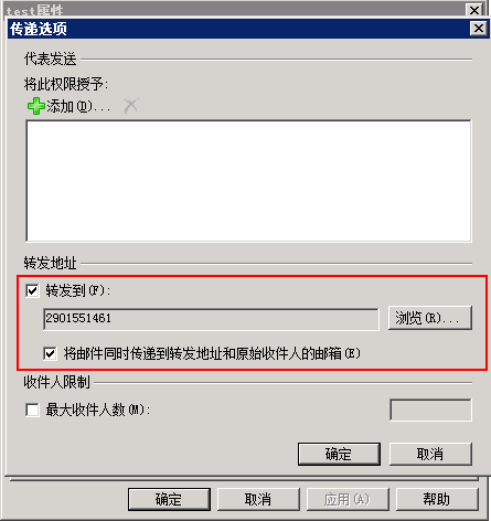 场景:Test账号想对其收到的邮件做一个外部邮件系统的副本备份,凡是发给Test的邮件都将转发到一个外网的邮箱 2901551461@qq.com 中。