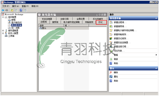 打开EMC管理控制台,选择“组织配置---集线器传输---操作---新建日志规则”