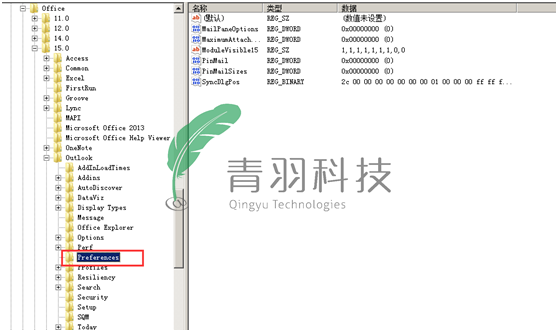 如果你确定你的邮件服务提供商允许发送超过20M大小的附件(不是超大附件),你可以修改Outlook允许发送附件大小的默认值。打开注册表,找到以下键值(注意:如果当前不存在该路径,请手动在注册表中创建路径)在启动的注册表中,按如下路径找到指定的项,"HKEY_CURRENT_USER\Software\Microsoft\Office\14.0\Outlook\Preferences" 如下图所示;