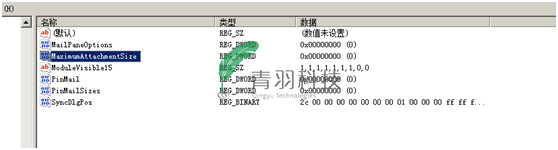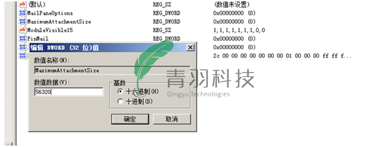 修改值数据,鼠标右键MaximumAttachmentSize键值选择修改,将键值输入需要设置的MB数,设置前一定确定你的邮件可以发送多大的附件。
