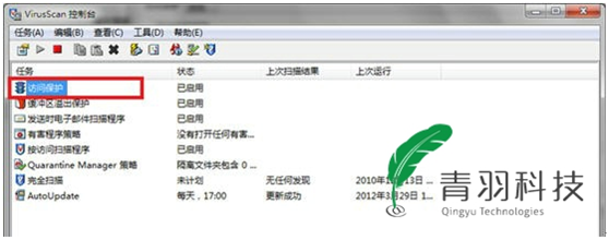 1、右击McAfee在系统右下角的小图标,选择“Virus Scan控制台”,在弹出的界面中,选择“访问保护”