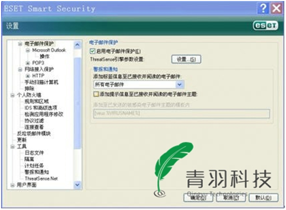 如果不想让ESET NOD32 EAV3.0监控邮件,可以按下面的方法设置: