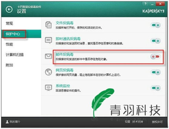 如果不想让卡巴斯基监控邮件,可以按下面的方法设置: