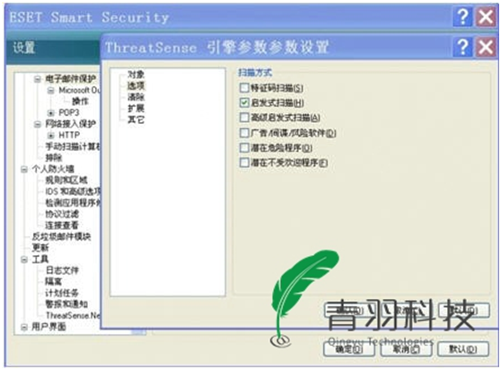 2、在上图中点击“设置”,系统会显示“引擎参数设置”页面,点击其中的“对象”,然后不勾选右侧出现的任何“扫描目标”