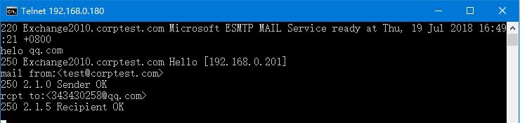 至此已经新建了一个允许192.168.0.201此IP向Exchange的25端口匿名投递邮件的接收连接器,测试在192.168.0.201客户端上匿名发送邮件成功: