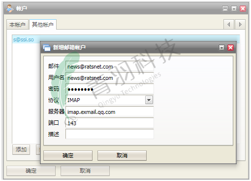 3.在弹出的界面方框中:填入你需要添加账户的信息资料,如图事例,然后确定