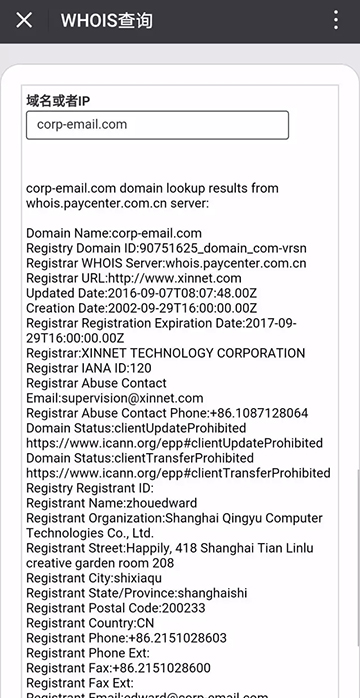 用Whois来查看域名的当前信息状态,包括域名是否已被注册、域名当前所有者、所有者联系方式、注册日期、过期日期、域名状态、DNS解析服务器等。