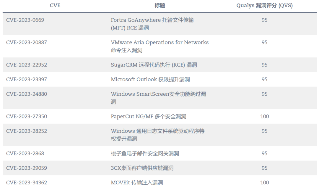 网络安全软件提供商 Qualys Inc.近期发布的一份新报告发现,到2023年,只有不到1%的漏洞会导致最高风险被广泛利用。