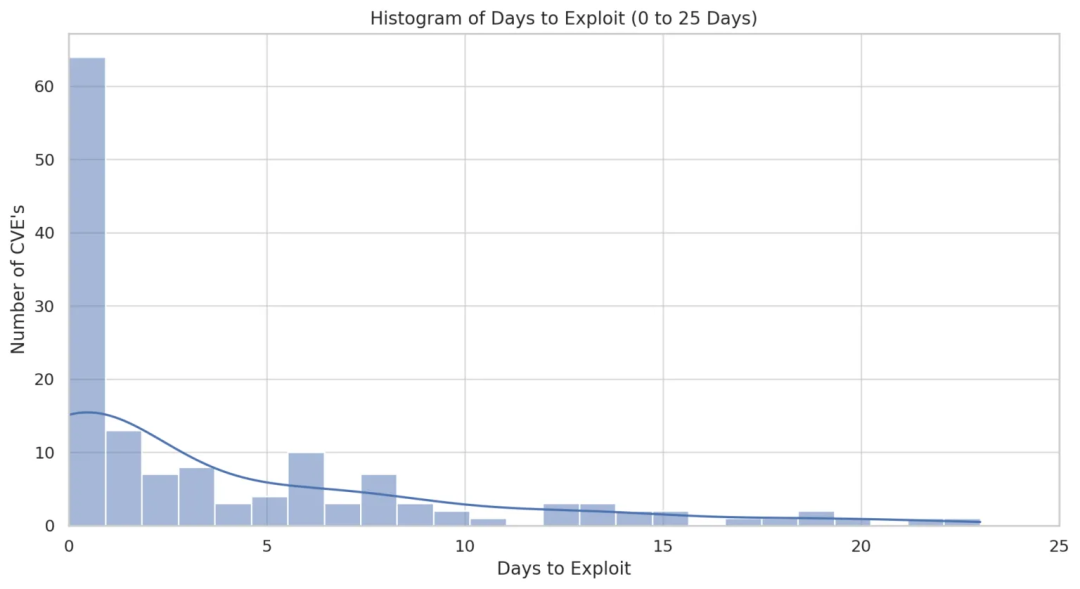 据说,利用已知的漏洞代表了攻击者作案方式的转变,突显了攻击者效率的不断提高和防御者响应窗口的不断缩小。25%的高风险常见漏洞和暴露在发布当天就被发现已被利用。
