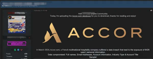 全球最大的酒店服务提供商之一雅高集团超64.2万人敏感信息遭泄露,包含姓名、电子邮件地址、职位以及所属公司等数据。