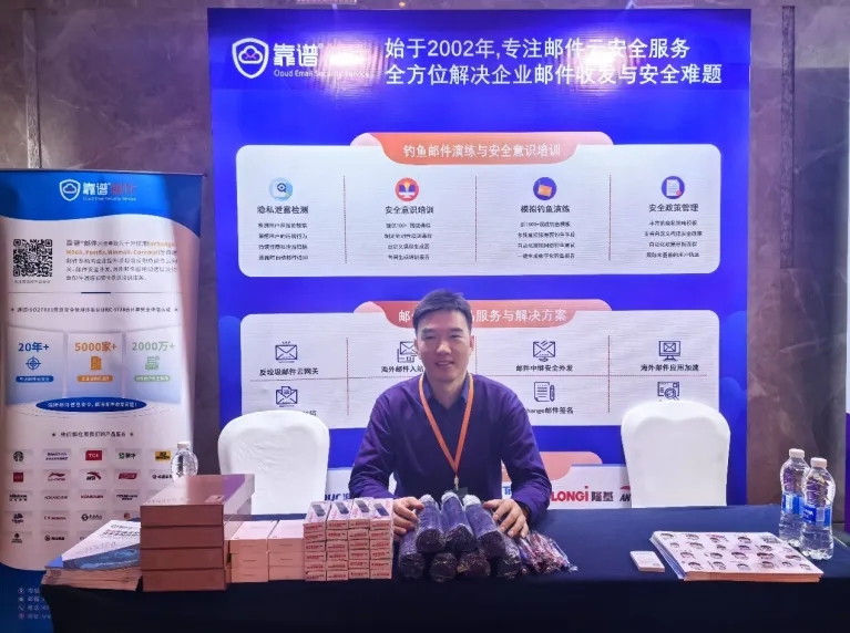 在峰会现场,靠谱®邮件受到了众多参会者与业内人士的关注与好评,众多新老客户来到靠谱®邮件展台前与我们热情互动,重点讨论了随着AI人工智能等技术的广泛应用,新型钓鱼邮件、BEC商业诈骗邮件、恶意软件攻击的演变趋势与防护手段。靠谱®邮件凭借稳定靠谱的产品服务、良好的用户口碑,赢得了众多客户的信任和支持。