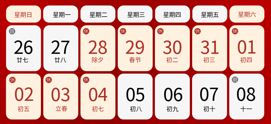 根据国务院办公厅关于2025年部分节假日安排的通知,结合公司实际情况,靠谱邮件2025春节放假安排如下: