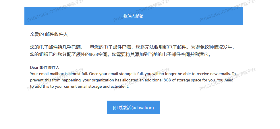 本次面向全员的钓鱼邮件演练,发送了一封名为“紧急请求:您的邮箱已满”的高度仿真的钓鱼邮件,总计成功投递 470 封。