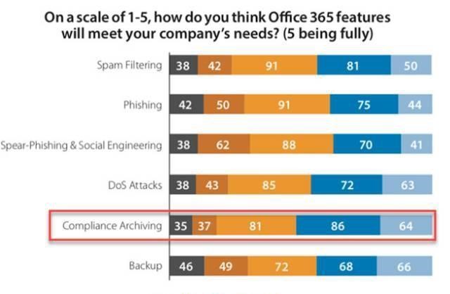 微软Office365服务这几年已经在全球范围内大力推广,大量企业购买这款知名的SaaS服务来满足邮件沟通,协同办公等日常事务。但近期一家评测机构的一份报告,在对超过全球1100家公司的超过10000名用户的调查反馈显示,对于微软Office365的期待主要表现在其合规性和归档功能。