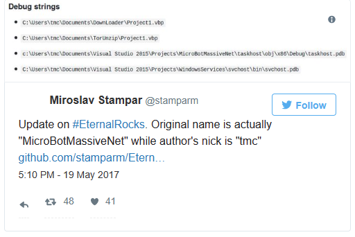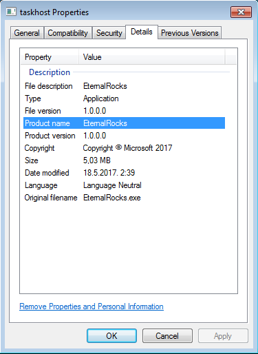 此外,EternalRocks还使用与WannaCry的SMB蠕虫相同名称的文件,另一个尝试愚弄安全研究人员进行错误分类。