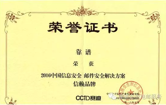 感谢大会组委对靠谱邮件品牌的认可,我们会继续努力,为客户提供靠谱的邮件安全服务!