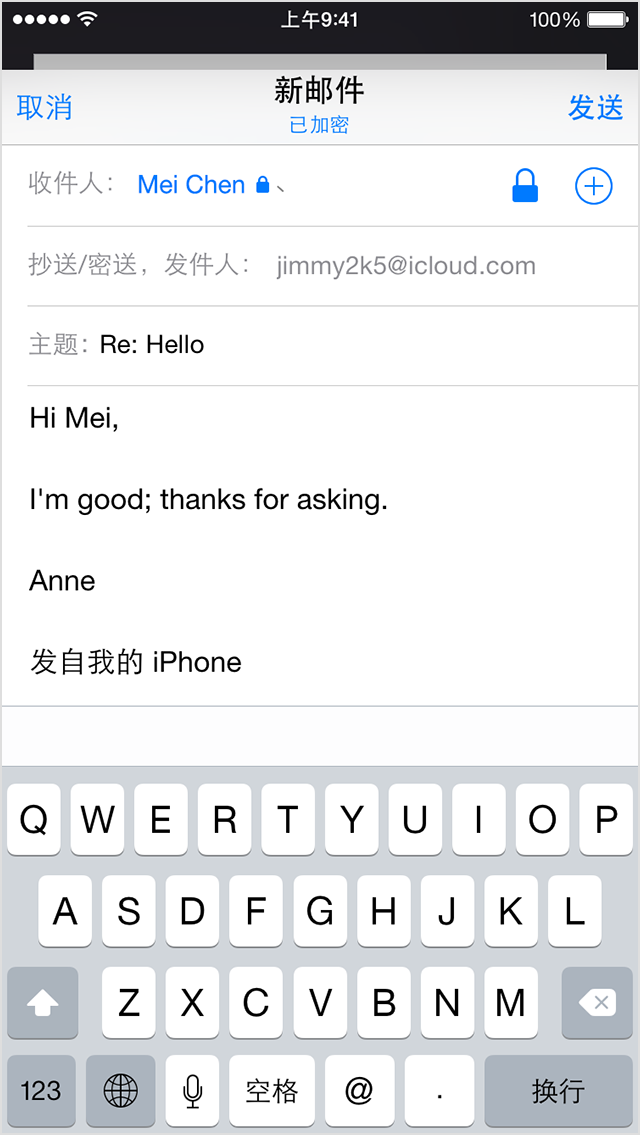 IOS 提供针对 S/MIME 的支持,因此您可以发送加密电子邮件。
