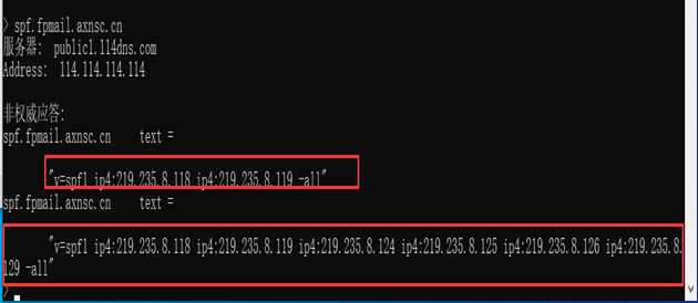 可以对比下错误点,就是在子的spf.fpmail.axnsc.cn这条中,包含了两条v的记录;