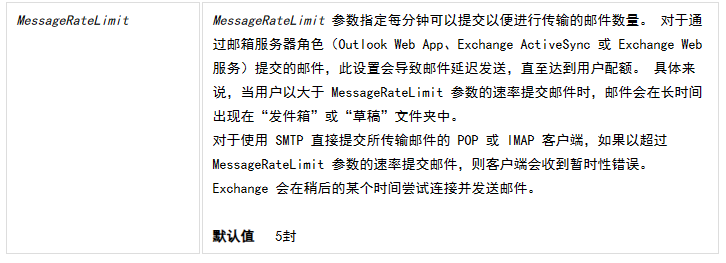 邮件系统版本是Exchange 2013,经过查找,是因为从Exchange 2010开始,默认每分钟发送的邮件封数限制为5封,这个限制参数是:MessageRateLimit