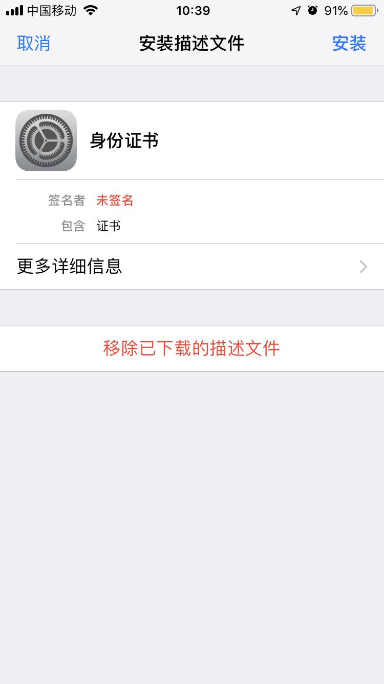 安装后,在“设置”--“已下载的描述文件”中进行证书的安装: