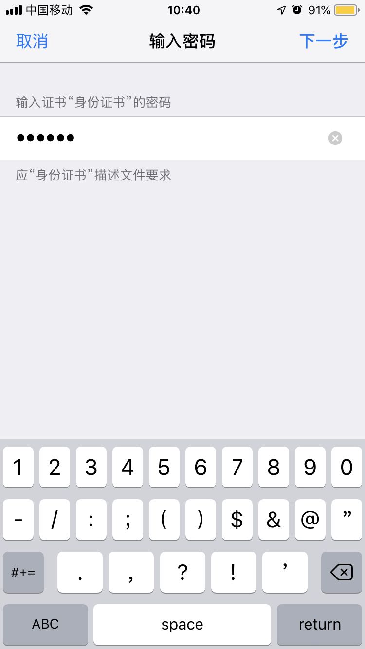 安装过程中,会要求输入手机解锁密码和pfx的证书密码: