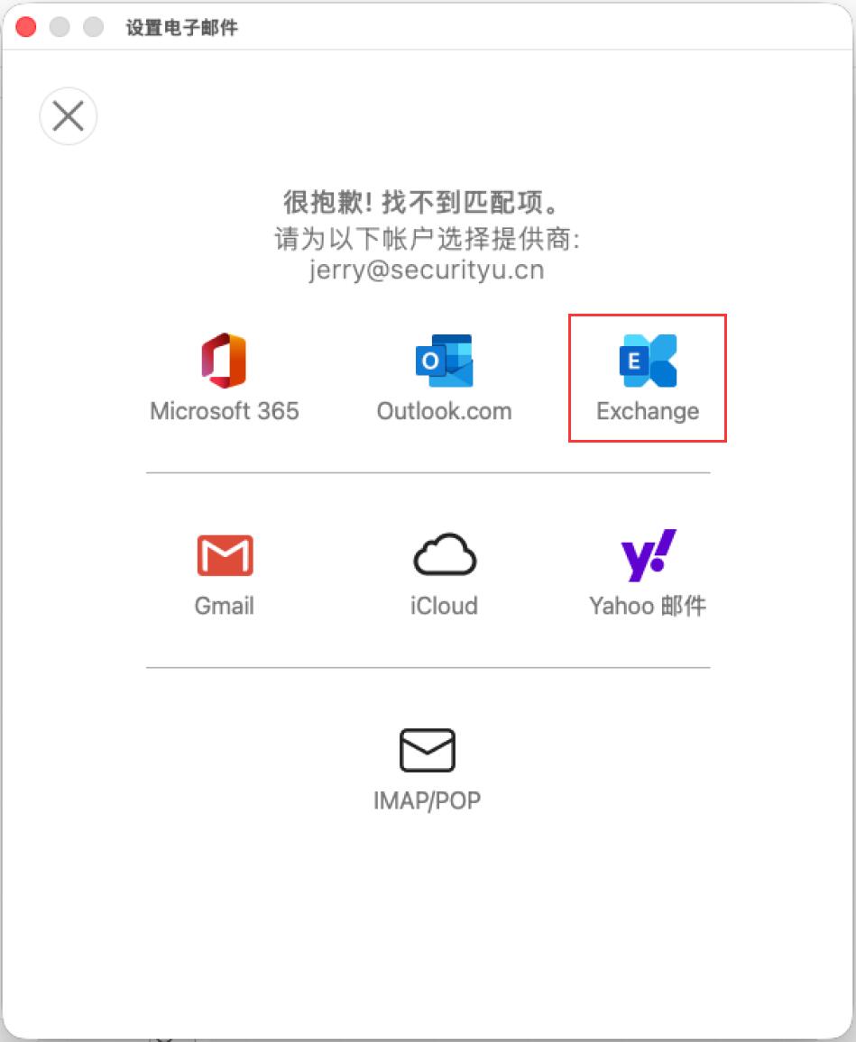注:如跳转至如下选择提供商界面,请选择[Exchange],再按照上一步填写账户配置信息。