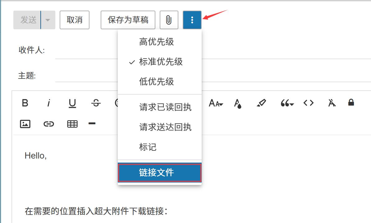 超大附件以链接形式发送到收件人,在收到邮件后点击正文中的下载链接即可下载超大附件。