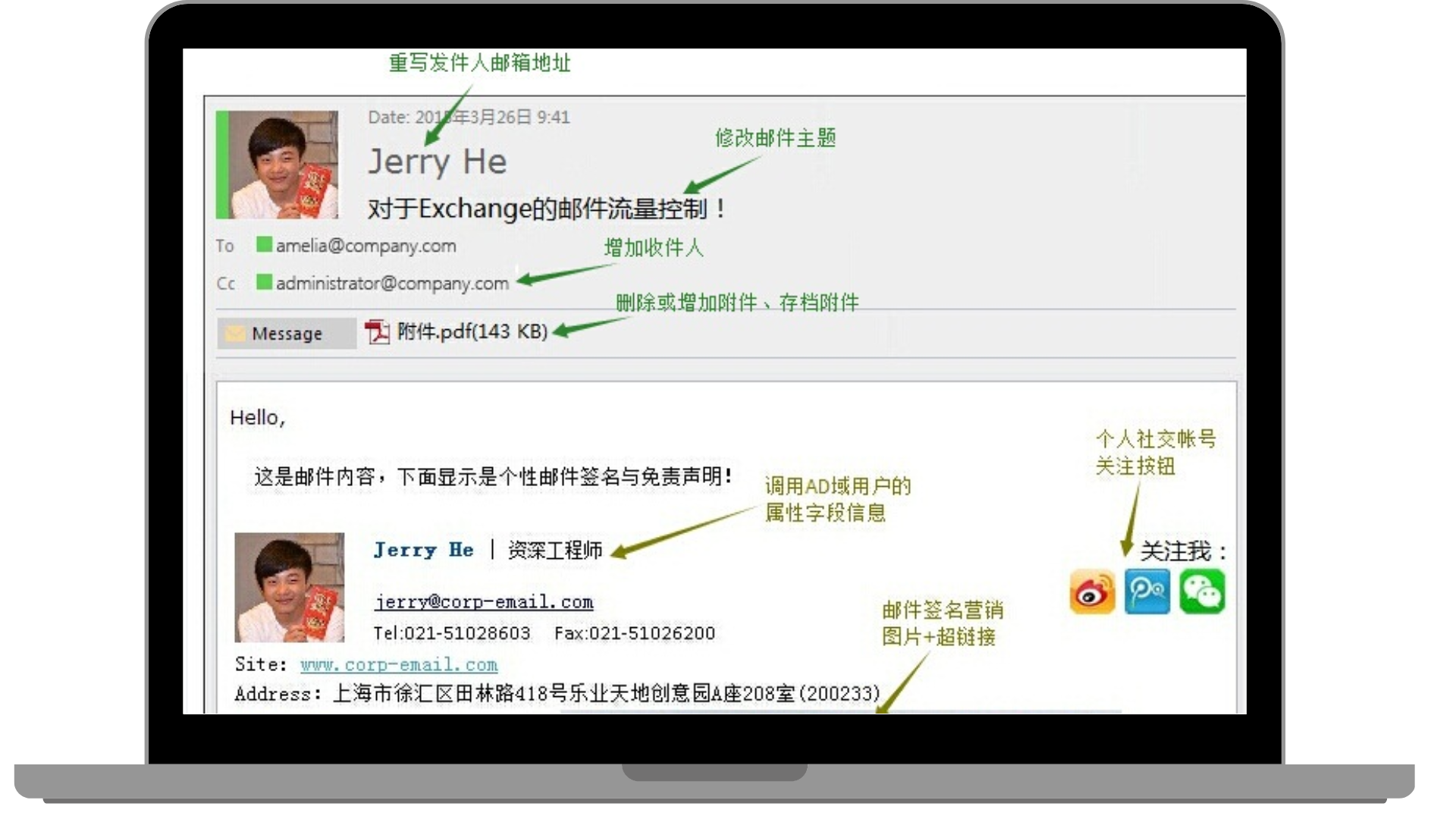 Exchange邮件签名软件支持在电子邮件中嵌入式添加公司Logo、照片或其他图片(非附件形式)