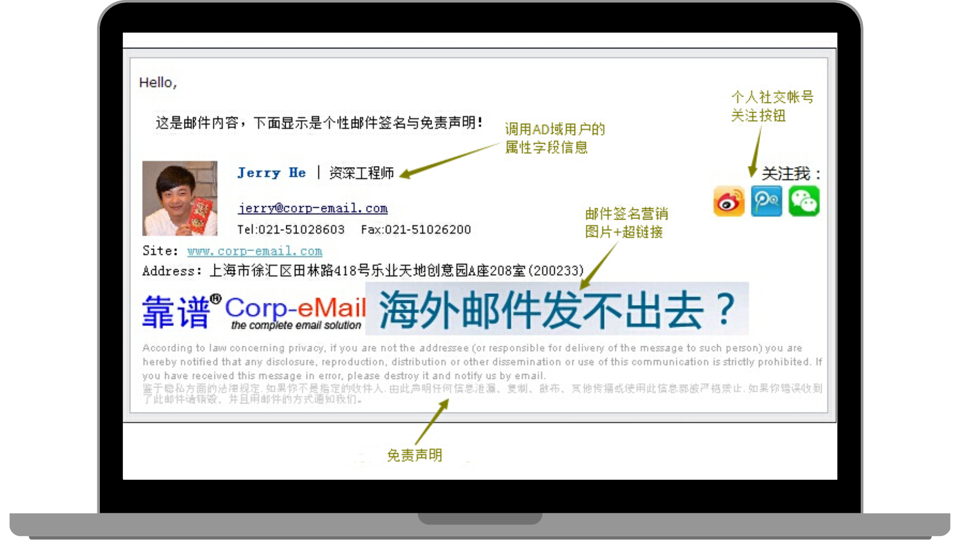 在5分钟之内,可为整个公司设计一个统一的电子邮件签名及免责声明,统一企业品牌形象