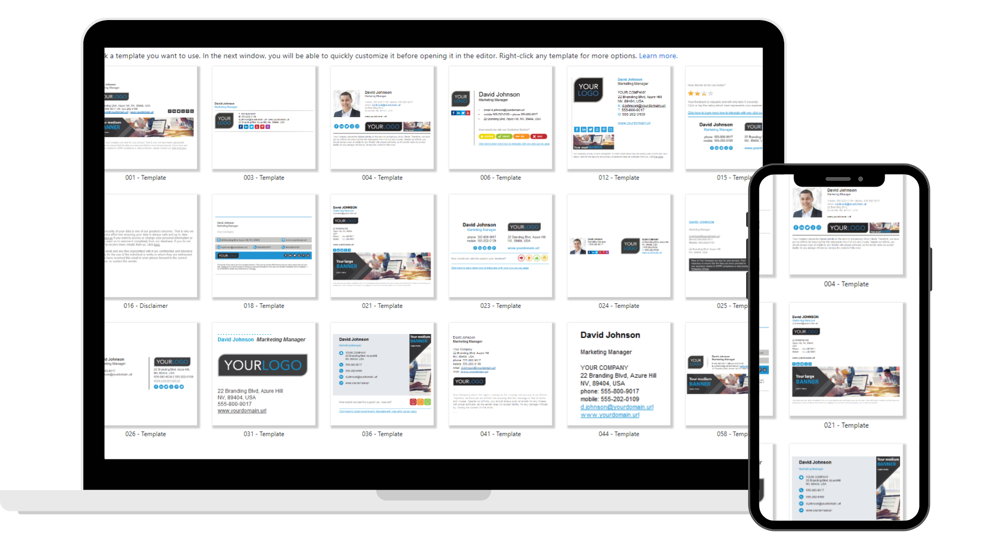内置数十种精美模板,可视化操作轻松上手,签名软件支持为不同发件人及接收群组创建个性化签名模板