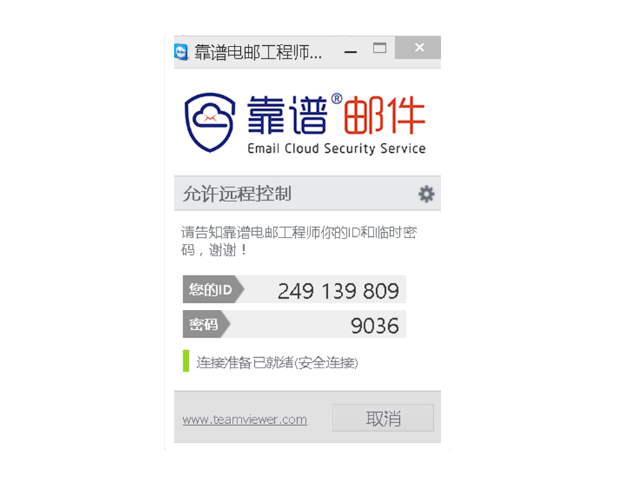 靠谱电邮工程师通过您给到的相关密码远程连接到您的电脑,为您解决相关问题(您可以在屏幕同时操作)。