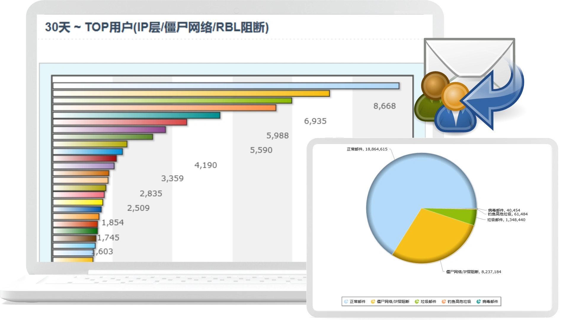 基于云端大数据数据的异常发信行为分析和多重反垃圾反病毒引擎定期自动更新,防范新型垃圾、病毒、钓鱼邮件效率更高。 监测账号弱密码等问题导致群发垃圾,及时通知用户,保障邮件账号信息安全。 |