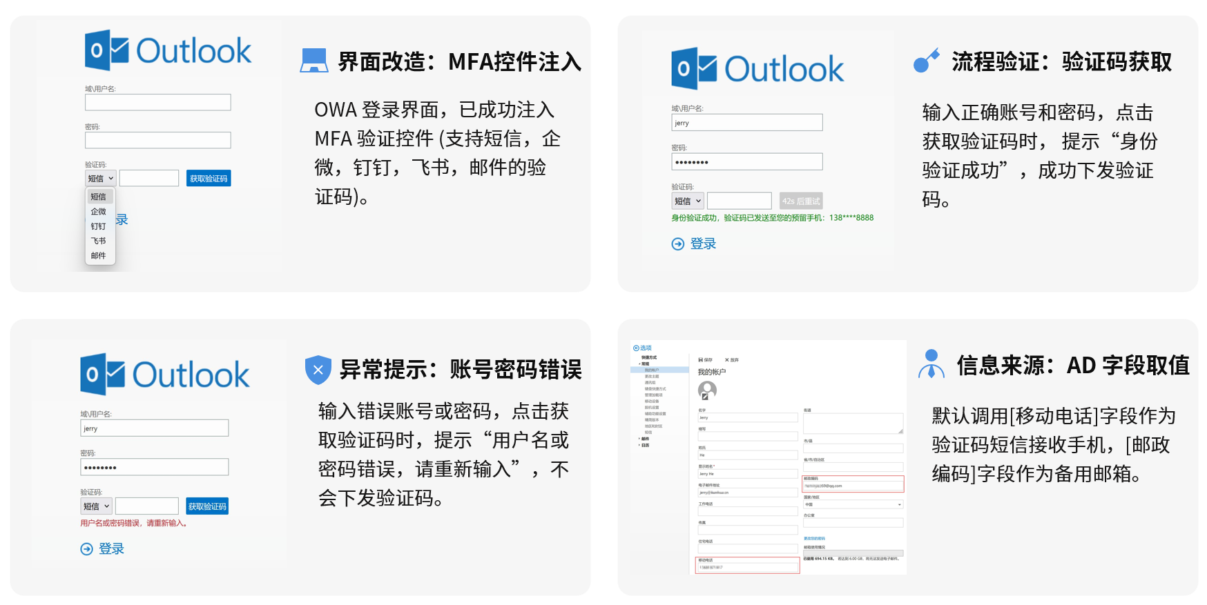 通过在Exchange OWA底层身份验证流程中嵌入安全拦截模块,实现将传统的“单层密码”升级为“双因素验证”。