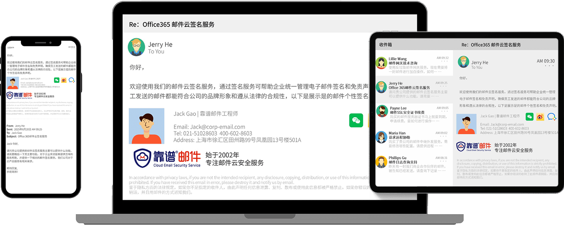 无论通过 Outlook、Webmail 还是移动端发送邮件,系统都会在云端完成签名插入,保证每一封邮件都具备一致的专业形象。