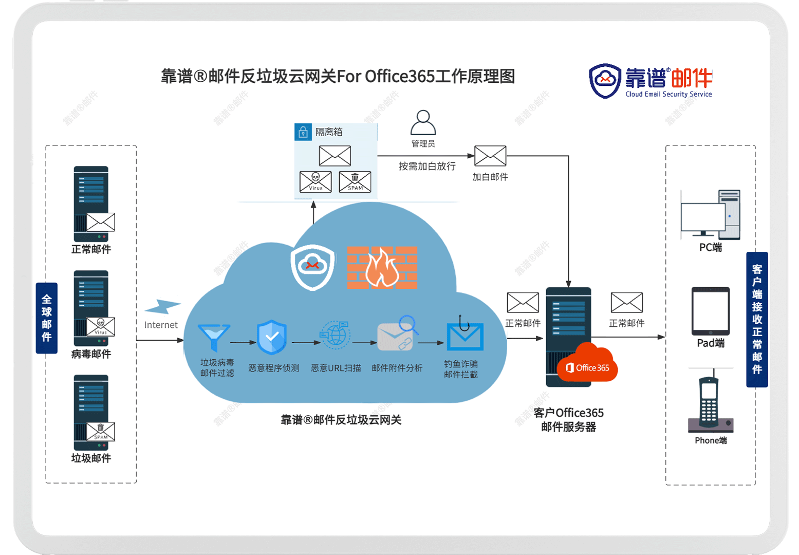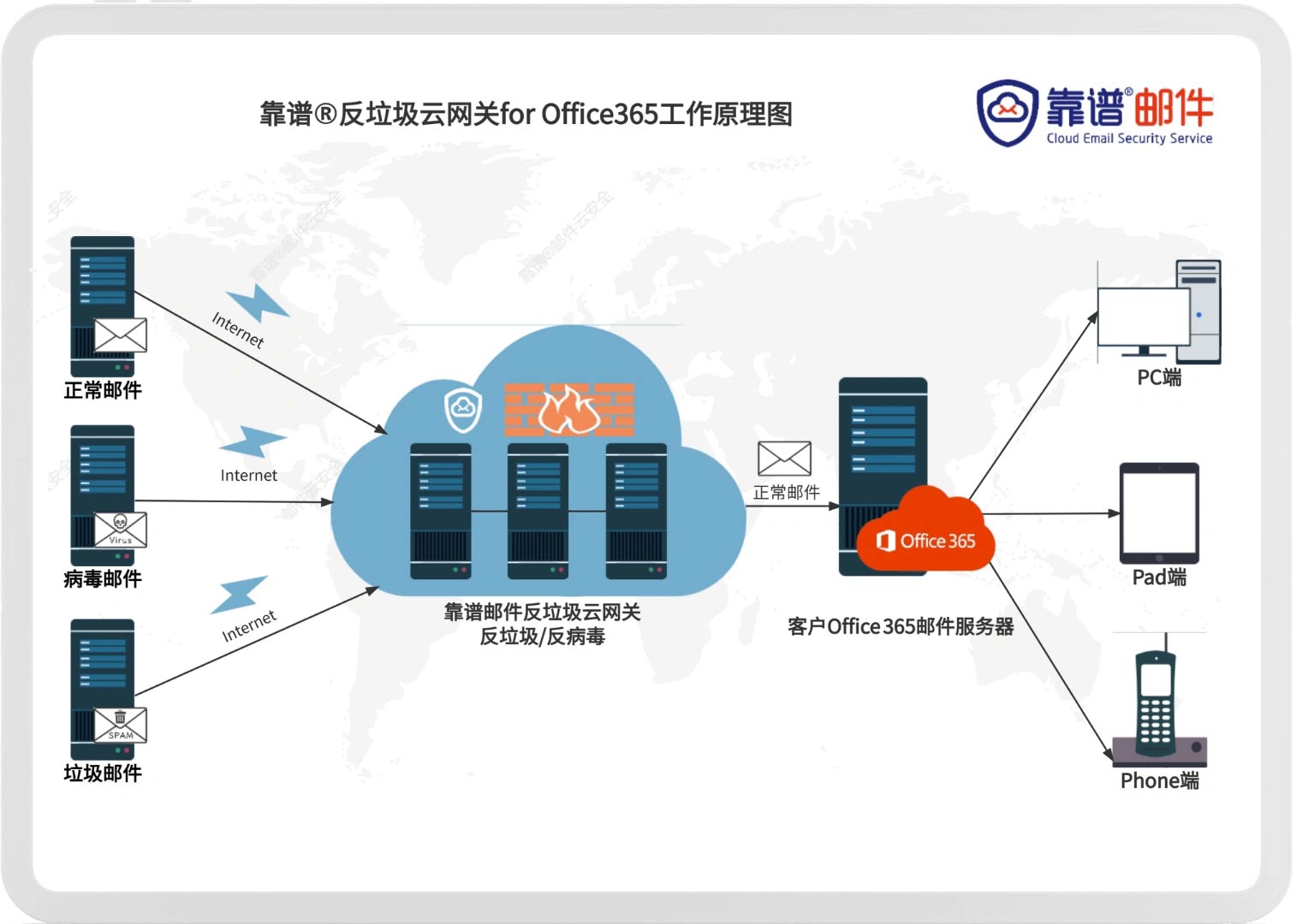 靠谱®邮件依托20余年的邮件云安全服务经验和千万以上的邮件账号的反垃圾大数据,面向购买国外版或国内版Office365用户提供更具性价比且更专业靠谱的反垃圾、反病毒、反钓鱼的邮件安全服务,更好帮助Office365企业用户解决邮件面临的各种威胁和攻击,提升企业的邮件信息安全!